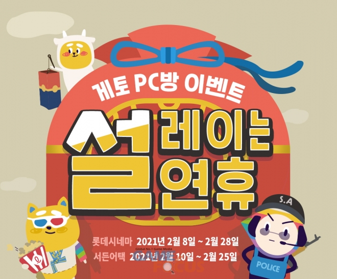 또 2월 8일부터 28일까지 ‘게토’ PC방 이용 고객 전원에게 ‘롯데시네마’ 영화 예매 할인권을 제공한다. PC방 이용 시 관리프로그램 배너를 클릭하면 롯데시네마 이벤트 페이지로 이동해 할인권을 다운로드 할 수 있다.