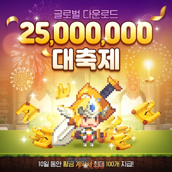 NHN은 이번 2,500만 다운로드를 기념해 오는 25일까지 감사 이벤트를 진행한다. 랜덤으로 용사를 획득할 수 있는 '황금계약서'를 매일 10개씩 총 100개를 지급하며, 일정 퀘스트 완료 시 고대의 서, 6성 챔피언 해금 용사선택권, 각인석 획득권을 전체 유저에게 제공한다.