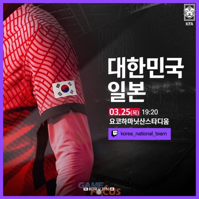 오늘 25일 저녁 7시 20분 시작될 A매치 한일전은 국가대표 트위치 공식 채널에서 관람할 수 있다.