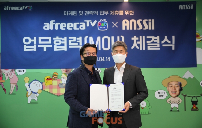 아프리카TV는 매트리스 전문 브랜드 ㈜앤씰(ANSSil)과 공동 마케팅 활동을 위한 업무협약을 체결했다고 26일 밝혔다. 이날 협약식에는 아프리카TV 정찬용 대표이사와 앤씰 송범근 대표가 참석했다.