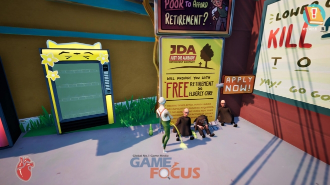 '저스트 다이 얼레디'는 염소 시뮬레이터 제작진이 새롭게 선보이는 노인 아수라장 샌드박스 게임이다. 당신은 아무도 아이를 갖지 않는 근미래를 배경으로 은퇴한 노인이 되어, 그 누구도 당신의 생활비를 보장해주지 않는 상황에서 이 세상의 다른 모든 노인들과 마찬가지로 스스로 살아남는 길을 찾아야 한다.