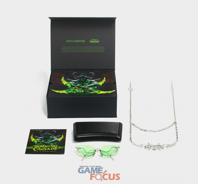 해당 패키지에는 일리단의 상징과도 같은 아지노스 검을 형상화한 메탈 소재의 선글라스 액세서리와 곧 출시될 불타는 성전 클래식을 포함, 월드 오브 워크래프트를 플레이할 수 있는 30일 게임 시간이 포함된 게임 코드가 함께 제공된다. 불타는 성전 클래식 출시 기념 한정판 선글라스는 오늘 24일(월) 오후 5시부터 젠틀몬스터의 공식 웹사이트 및 일부 컨텐츠 크리에이터들을 통해 정식으로 공개되며, 서울 강남구에 위치한 젠틀몬스터 플래그십 스토어인 젠틀몬스터 하우스 도산에서도 한달 간 전시될 예정이다.