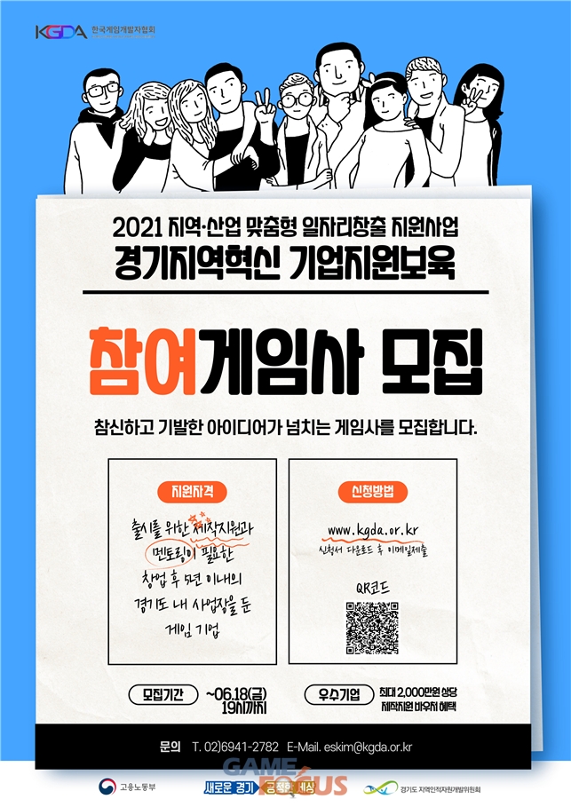 (사)한국게임개발자협회는 '2021 경기지역혁신프로젝트 기업지원보육사업'을 오는 5월 28일(금)부터 6월 18일(금) 19시까지 (사)한국게임개발자협회 공식 홈페이지를 통해 기업 참여 접수를 진행한다.