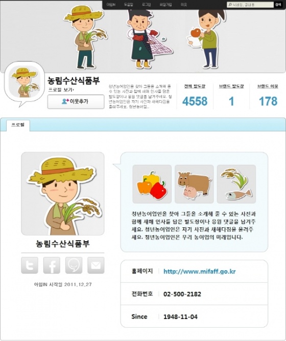 KTH 오현주 아임IN PM과 농림수산식품부는 “청년 농어업인들이 글로벌 경쟁시대를 돌파할 수 있는 용기와 희망을 갖도록 격려하기 위해 함께 이벤트를 기획했다”며 “같은 지역에 위치한 유저들과 따뜻한 정을 나누는 온라인상의 소통 공간인 아임IN에서 국내 농어업에 대한 긍정적인 인식이 더욱 확산되기를 바란다”고 전했다.