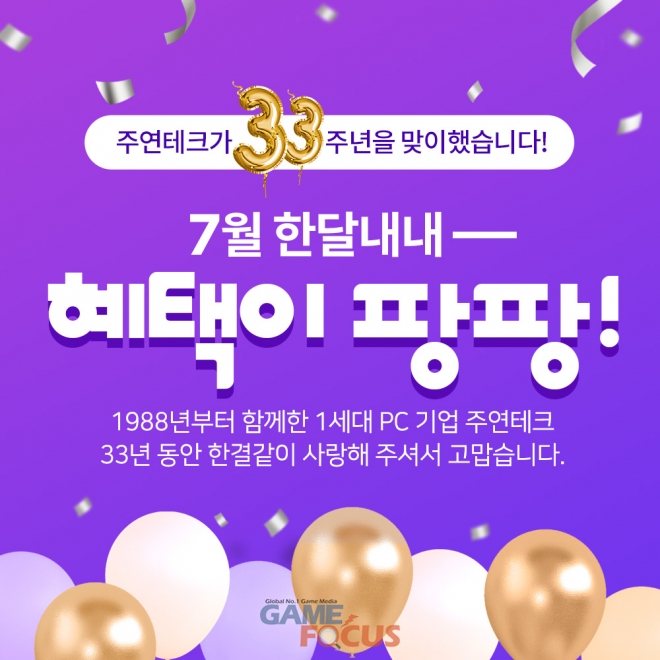 주연테크(대표 김희라)가 7월 7일 창립 33주년을 맞아 다양한 제품 할인혜택과 함께 풍성한 공식 SNS 이벤트를 함께 진행한다.