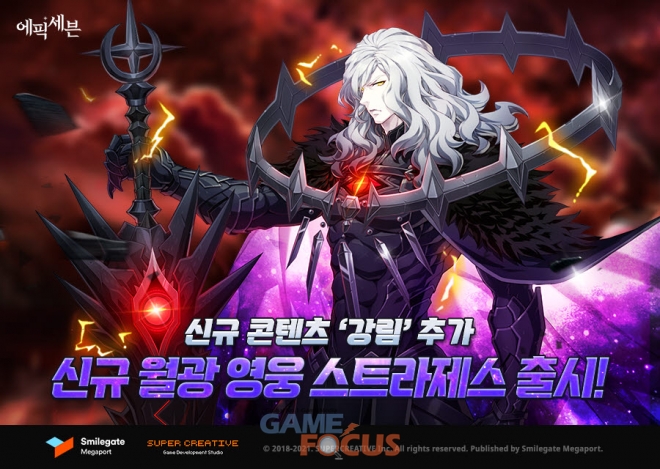 한편, 에픽세븐은 강림과 함께 신규 월광 영웅 '스트라제스'도 새롭게 선보인다. 5성 등급의 암속성 전사 영웅인 스트라제스는 적 전체를 공격할 수 있는 광역 스킬을 2종 보유하고 있으며 자신의 공격력이 상대 영웅 보다 높을수록 스킬의 효율이 상승하는 등 공격에 특화된 것이 특징이다. 특히, 3번째 스킬인 '별의 소멸'은 적 전체에 광역 피해를 입히면서 최대 생명력이 가장 높은 적 1명에게는 더욱 큰 피해를 입힐 수 있다. 스킬 강화 이후에는 스킬 사용 후 자신에게 무적을 발생시키는 등 공수 양면에서 높은 효율을 보장한다.