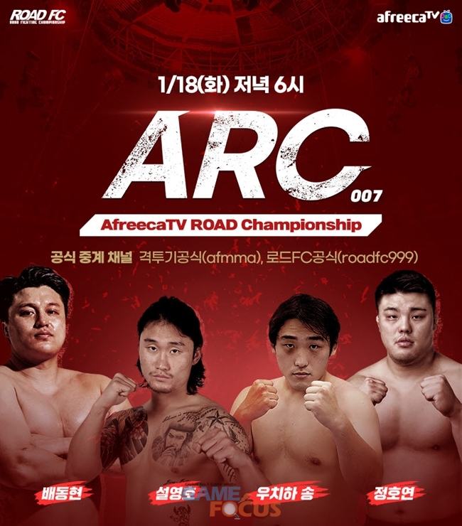 아프리카TV가 로드FC와 공동으로 개최하는 종합격투기 대회 'ARC(AfreecaTV Road Championship, 이하 ARC) 007'을 18일 오후 6시부터 생중계한다.