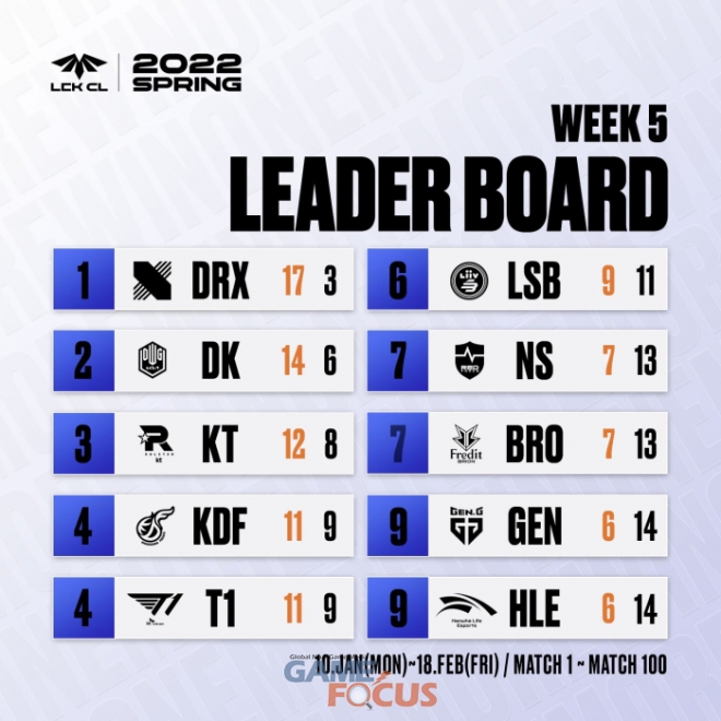 리그 오브 레전드 공식 2군 리그인 ‘2022 LCK 챌린저스 리그(LCK Challengers League) 스프링’의 4라운드 중 2라운드가 마무리됐다. 3라운드의 첫 방송 경기는 2월 21일(월) 오후 5시에 농심 레드포스와 T1의 경기로 시작한다.