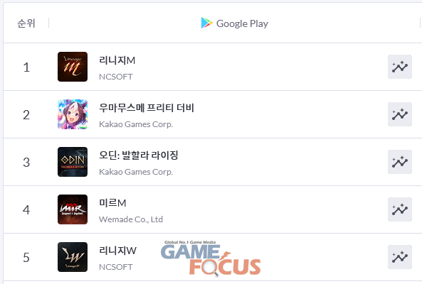 TOP 5는 '리니지M'이 1위 독주를 이어가는 가운데, 서비스 시작 후 흥행 질주에 성공한 '우마무스메 프리티 더비'와 '오딘: 발할라 라이징', '리니지W' 등이 차지하고 있다. 최근 서비스를 시작해 유저들 사이에서 화제를 모았던 '디아블로 이모탈'과 '던전앤파이터 모바일' 등을 제치고 TOP 5 진입에 성공해, TOP 5 내에서도 순위를 더욱 끌어올릴 수 있을지 주목된다.