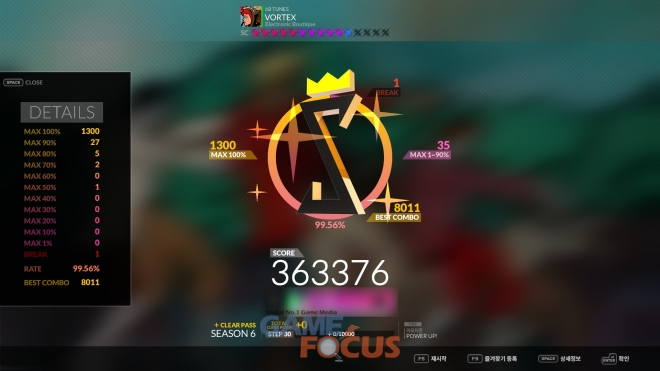 시즌 6과 '튠&큐'를 통해 대략적으로 앞으로의 SC 패턴 및 난이도 방향성을 느껴볼 수 있었는데, 6버튼의 경우 중~저렙 SC 패턴을 중심으로 난이도 인플레이션이 점차 진행 중인 것 같아 더욱 실력 정진의 필요성을 느끼고 있다.