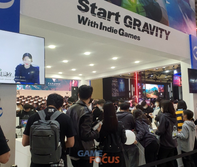 자사 개발 타이틀 및 인디 게임 총 11종의 시연대로 꾸며진 그라비티 부스는 지스타를 통해 공개한 신작을 플레이하려는 관람객들로 가득 채워지며 눈길을 끌었다. 그라비티 부스 위쪽 대형 LED 화면에서는 출품작 13종에 대한 게임 소개 및 개발자 인터뷰 영상이 노출되어 지나가는 관람객들의 시선을 사로잡았다.