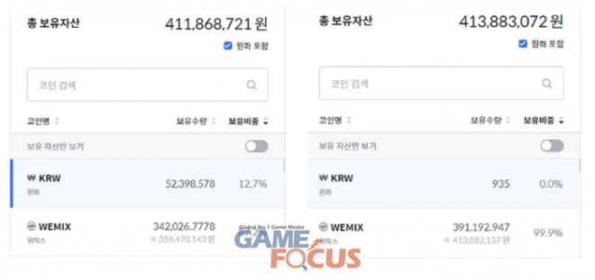 위믹스 팀이 공개한 장 대표의 코인원 거래소 위믹스 보유량