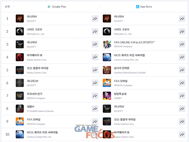구글 플레이에서는 매출 TOP 10 내에 MMORPG 8종이 오르면서 그 어느 때보다도 MMORPG 장르 경쟁이 치열하다. 특히 이중에서도 '리니지M'이 '나이트 크로우'를 제치고 다시 매출 1위를 차지하면서 선두 자리를 놓고 정면대결을 벌이고 있다.