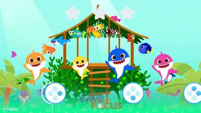 '핑크퐁 아기상어™: 노래와 수영 파티'에서는 바다에서 가장 큰 음악 경연 대회인 ‘파닥스틱 페스티벌’로 휴가를 떠나는 상어가족의 특별한 이야기가 진행된다. 페스티벌 현장으로 이동하기 위해 플레이어는 바다를 헤엄치며 화려한 트로피컬 베이, 거대한 오션 시티, 심해 왕국까지 총 7개의 맵을 탐험할 수 있다. 탐험 중에는 ‘리듬 모드’와 ‘러너 모드’로 구성된 레벨을 클리어하면서 가족과 우정에 관한 이야기를 감상할 수 있으며, 아기상어 세계관에 완전히 몰입할 수 있다. 또한 카드와 스티커를 수집하고 새로운 의상과 스킨을 획득하여 상어가족을 멋지게 커스터마이징 할 수도 있다.