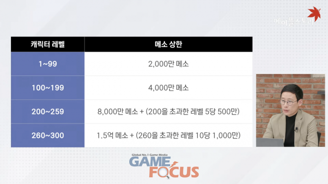 캐릭터 레벨 구간별 획득 가능한 '메소' 총량 제한 설정