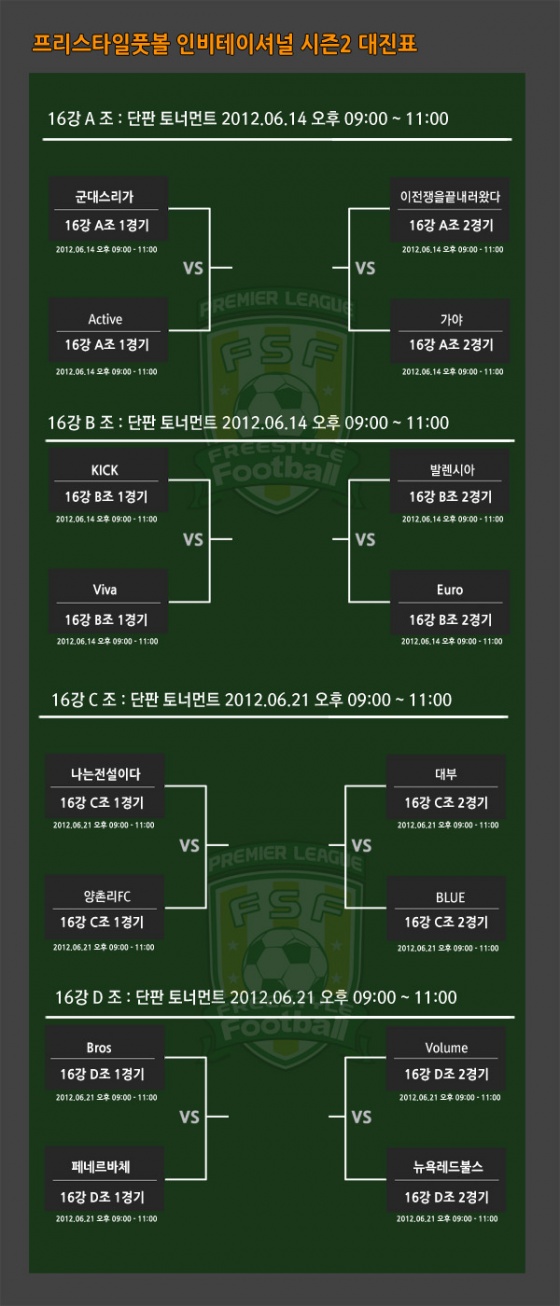 현실감 넘치는 경기 방식과 새로운 클럽들의 참가로 열기를 더해가는 ‘프리스타일 풋볼 인비테이셔널 시즌2’ 개막전은 오는 6월 14일 오후 9시, 곰TV와 JCE 프리스타일 풋볼 홈페이지를 통해 생중계된다. 5주 일정으로 진행되는 시즌2 개막전 출전 클럽은 ‘군대스리가’와 ‘Active(액티브)’다.