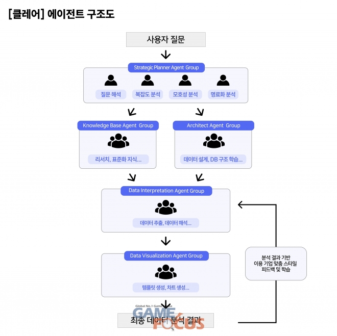 아이지에이웍스는 이 문제를 해결하기 위해 클레어를 16개의 전담 AI 에이전트가 협업하는 분업형 구조로 설계했다. 각 AI는 질문 이해 및 분석 기획, SQL 쿼리 설계, 데이터 검증 및 오류 방지, 결과 해석, 시각화 등 데이터 분석 전 과정을 나눠 맡는다.