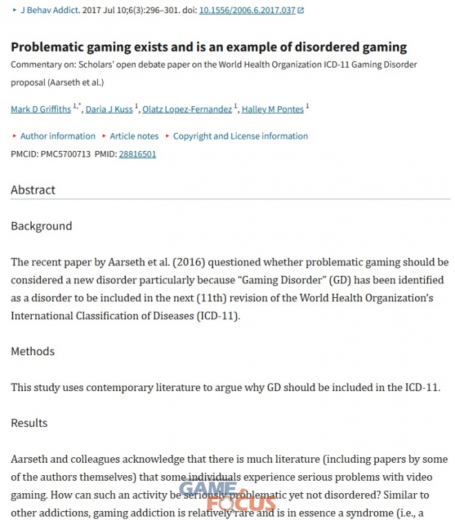 학자들 사이에서 뜨거운 관심을 받았던 마크 그리피스의 '게임 이용 장애의 ICD-11 등재는 시기상조이며, 연구 기반이 취약하고 낙인을 초래하므로 철회되어야 한다(Scholars' open debate paper on the World Health Organization ICD-11 Gaming Disorder proposal)'를 재반박한 논문