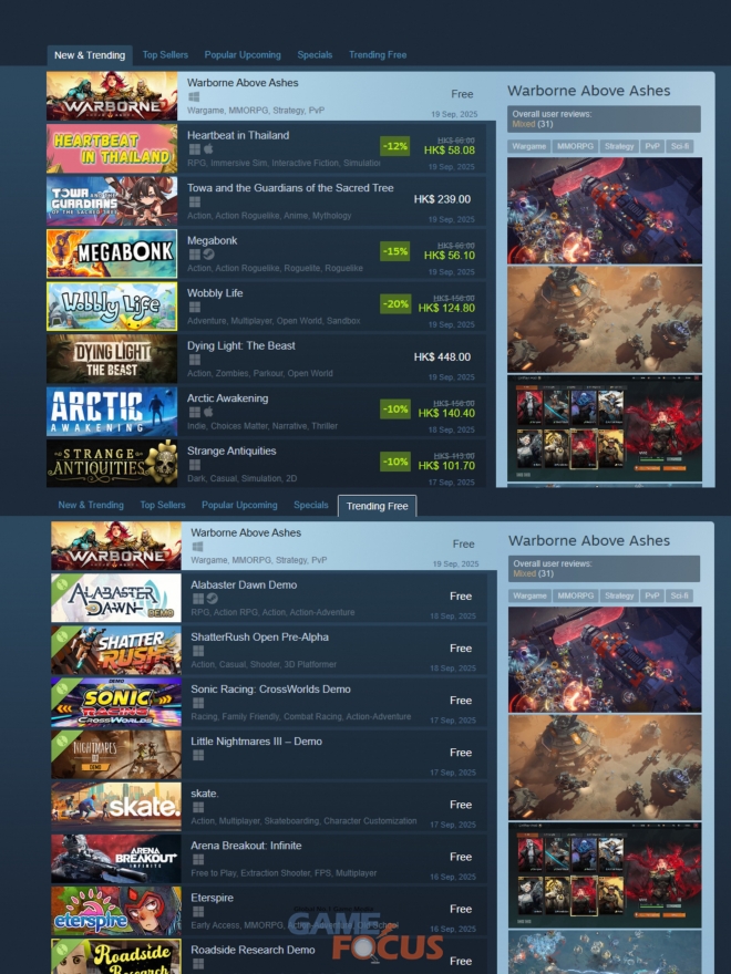 쿠랜드 게임즈는 자사의 신규 MMO PC게임 ‘Warborne Above Ashes(워본: 어보브 애쉬즈)’가 스팀 신규 인기 차트 및 무료 차트 동시 1위에 등극했다고 24일 밝혔다.
