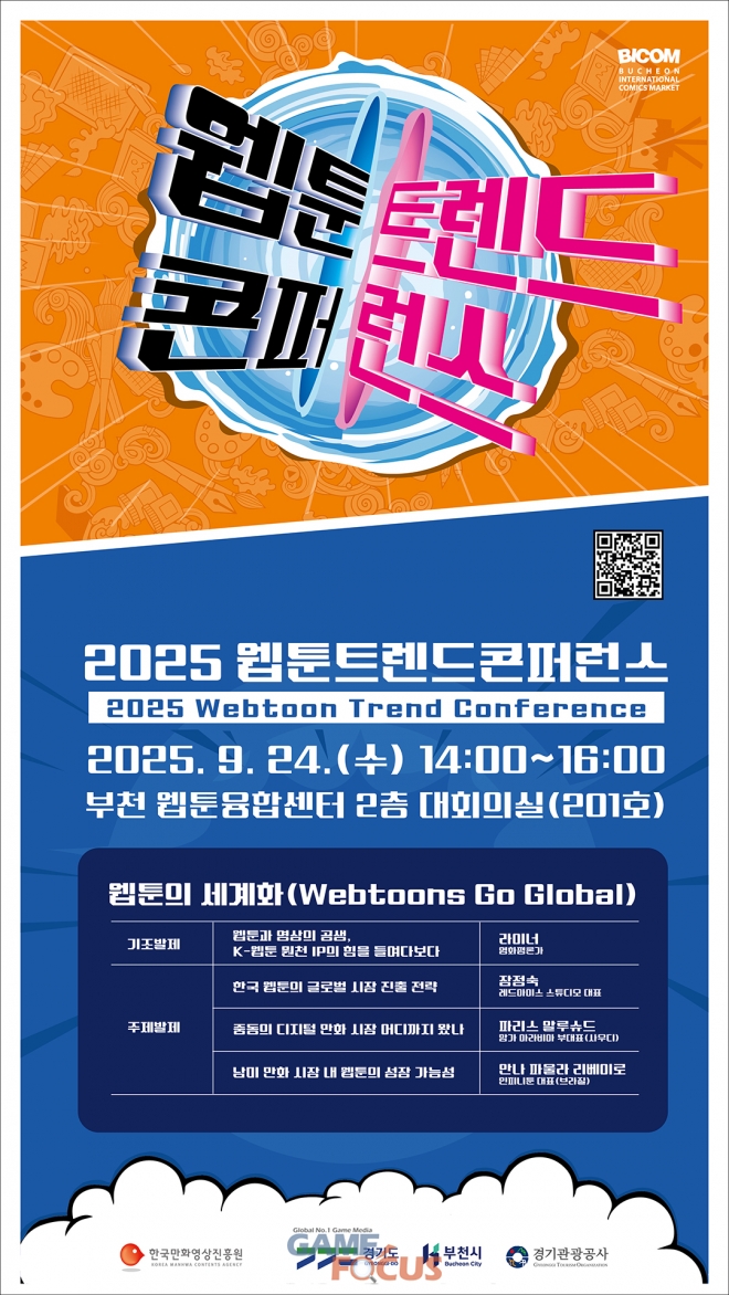 한국만화영상진흥원(원장 백종훈)이 주관하는 ‘2025 웹툰 트렌드 콘퍼런스’가 9월 24일(수) 개막한 가운데, 한국을 비롯한 전세계 웹툰 콘텐츠 산업에 대한 높은 관심과 열기가 이어졌다.