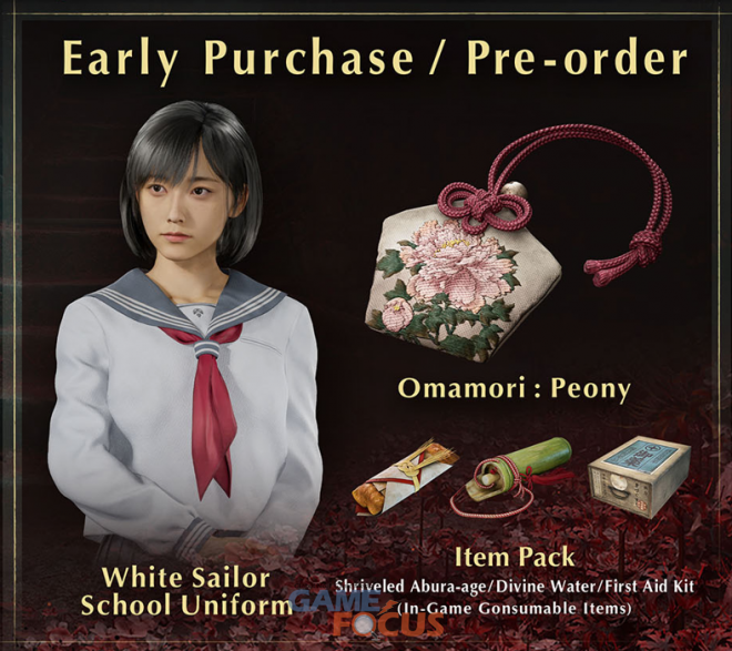 사일런트 힐 f는 PlayStation®5로 발매되며, 패키지 버전 조기 구매자를 대상으로 게임 내에서 사용할 수 있는 조기 구입 특전 바우처가 제공된다. 여기에 오프라인 매장 또는 로드샵에서 사일런트 힐 f의 패키지 버전을 구매한다면, 수량 한정으로 특제 클리어 파일도 제공된다.