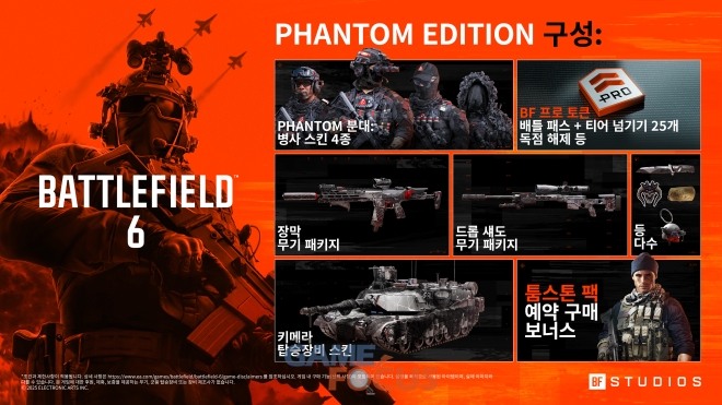 Battlefield™ 6 Phantom Edition**을 구매하면 다음 특전을 받을 수 있다.