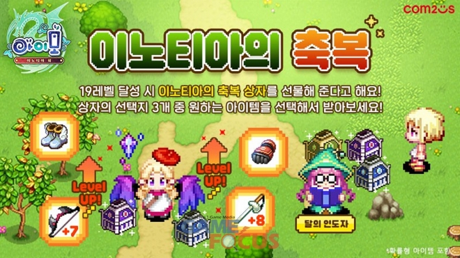 신규 및 복귀 유저를 위한 ‘이노티아의 축복’도 같은 기간 진행된다. 게임을 시작한 뒤 19레벨에 도달하면 NPC 달의 인도자로부터 ‘이노티아의 축복’을 받고, 20레벨부터 사용할 수 있는 ‘파워글러브’, ‘+8 백색 레이피어’, 각종 보석 중 하나로 교환할 수 있다.