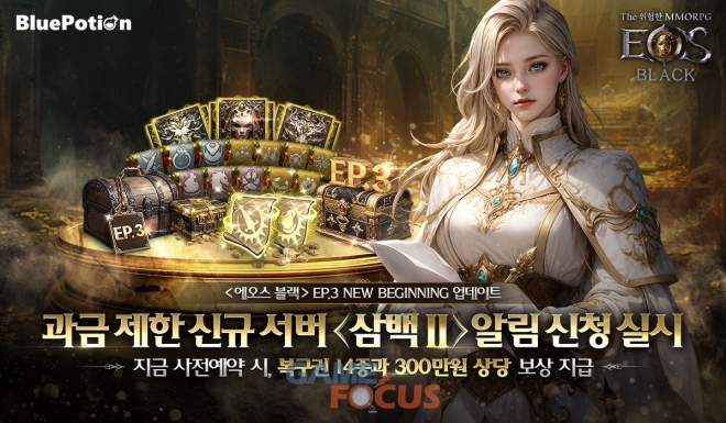 블루포션게임즈(대표 정재목, 조승진)는 직접 개발하고 서비스하는 모바일 정통 MMORPG ‘에오스 블랙’이 신규 서버 삼백II와 에피소드 3 업데이트를 위한 사전예약을 시작한다고 26일 밝혔다.