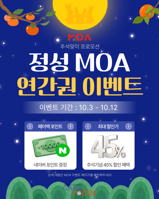 아시아 콘텐츠 전문 OTT 모아(MOA)가 다가오는 추석 황금연휴를 맞아 풍성한 이벤트를 준비했다고 30일 밝혔다. 이번 이벤트는 △모아 연간권 신규가입고객 △모아 공식 SNS 팔로워 △모아와 전자책 플랫폼 ‘북큐브’의 동시 가입자를 대상으로 하며, 다양한 경품과 혜택이 준비되어 있다.
