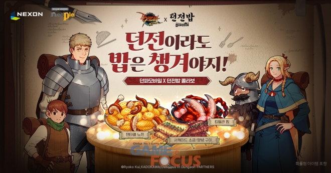 '던전밥'은 미궁 속 마물들을 식재료로 삼아 다양한 요리로 탄생시키며 던전을 돌파하는 내용의 쿠킹 판타지 만화로, 이번 컬래버를 통해 '라이오스', ‘마르실’ 등 ‘던전밥’의 인기 캐릭터와 몬스터를 ‘던파모바일’ 특유의 도트 그래픽으로 재해석해 선보인다.