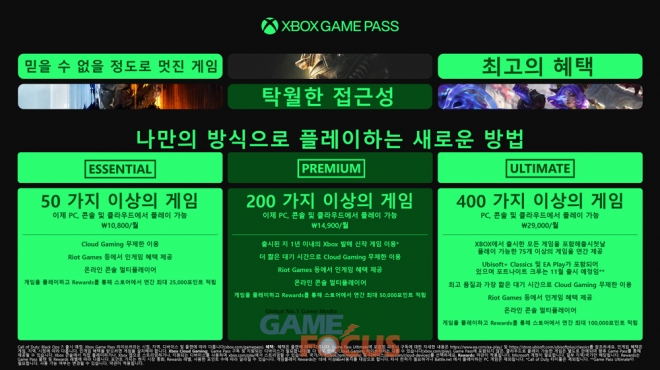 각 플랜에는 더욱 확장된 게임 라이브러리가 포함되며, PC 게임, 무제한 클라우드 게이밍, 인게임 혜택(Riot Games 타이틀 포함), 새롭게 개편된 Rewards with Xbox 경험을 제공하게 된다.