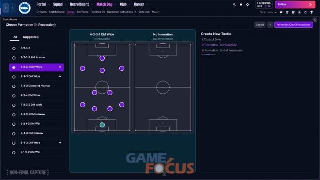 『FM26』는 전술 면이 크게 진화했다. 공격과 수비 시에 포메이션을 개별적으로 설정할 수 있는 신규 시스템을 통해 선수 배치와 역할을 더욱 세세하게 관리할 수 있게 되었다. 역할도 각 국면에 따라 나뉘어져 있어 새로운 역할과 재설계된 역할이 추가되었다.
