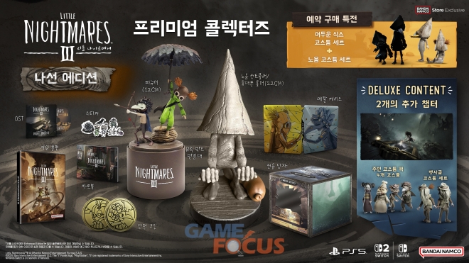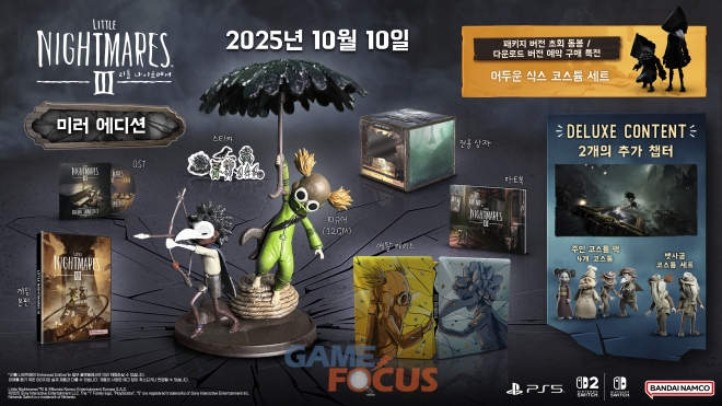 반다이남코 엔터테인먼트 코리아(지사장 장태근)는 PlayStation®5, PlayStation®4, Nintendo Switch™ 2, Nintendo Switch™, Xbox Series X|S, Xbox One, Steam®용 'Little Nightmares III(리틀 나이트메어 3)’ (한국어판)을 오늘(2025년 10월 10일) 발매했다고 발표했다.