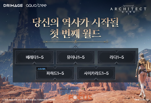 이와 함께 드림에이지는 사전 캐릭터 생성과 함께 총 5개 월드, 25개 서버를 공개했다. '베레타', '뮤이나', '라다', '파하드', '사이카라드' 등 5개 월드가 마련되며, 각 월드는 5개 서버로 구성된다. 이 중 4개 월드는 일반 서버, 1개 월드는 스트리머 참여 서버다.