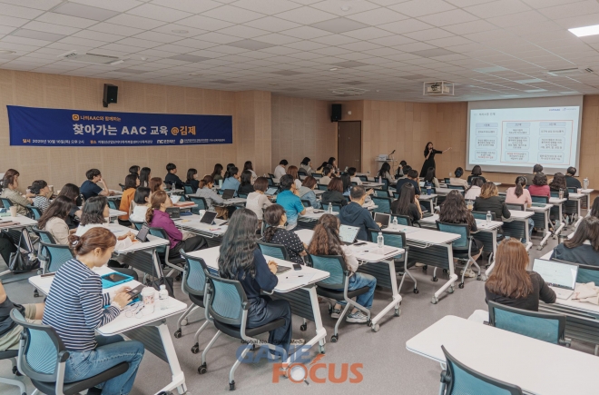 올해 찾아가는 AAC 교육 시즌2는 전북 김제에서 시작했다. 지난 16일 김제교육지원청 특수교육지원센터에서 교원 역량강화 연수의 일환으로 실시된 1회차 교육에는 특수교사, 통합학급 교사 70여명이 참석했다.
