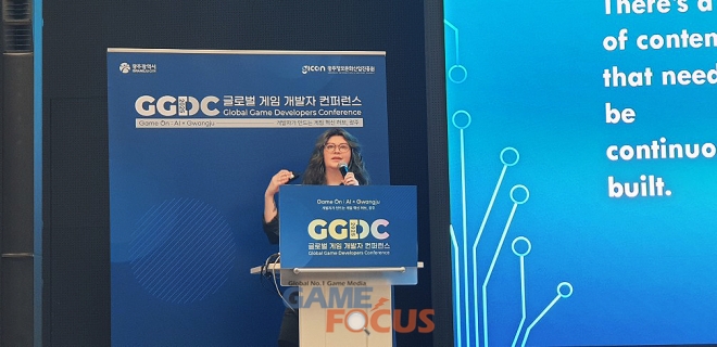 23일 광주광역시 국립아시아문화전당 문화정보원에서 개막한 글로벌 게임 개발자 컨퍼런스(GGDC) 2025 첫 연사로 나선 스위프티 게임 앤 컨설팅 창업자인 킴벌리 스위프트 대표가 AI 혁신을 위해 AI 자체보다 그 AI를 다룰 전문가가 더 중요하다고 역설했다.