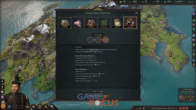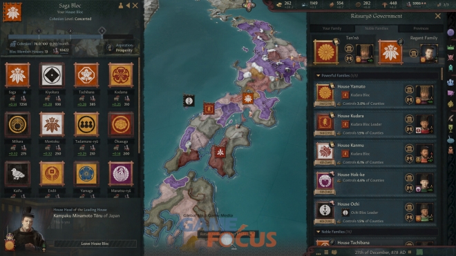 ●가문의 운명: 일본의 한 가문을 이끌며 운명을 개척하라. 정교한 궁정 시스템을 통해 ‘관백’ 또는 ‘쇼군’의 자리에 올라라.