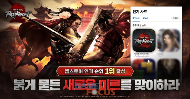 주식회사 브이파이브 게임즈(VFive Games, 대표 박미란)는 자사가 서비스하는 한국형 동양 판타지 MMORPG ‘미르의 전설2:레드나이트’가 애플 앱스토어에서 인기 순위 1위를 달성했다고 30일 밝혔다.