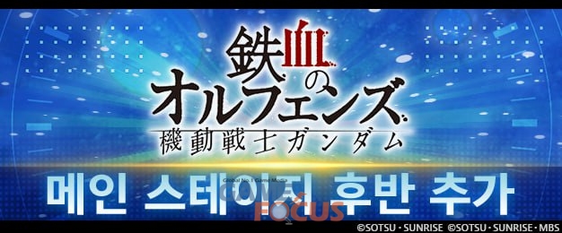 오늘 업데이트된 스토리 이벤트 「기동전사 건담 철혈의 오펀스 후반」은 메인 스테이지 「기동전사 건담 철혈의 오펀스」의 스테이지 13을 클리어하면 해방된다. 이와 함께 「기동전사 건담 철혈의 오펀스」에 등장한 캐릭터들을 중심으로 한 이야기를 그린 「SIDE STORY」도 함께 구현되었다. 「SIDE STORY」를 클리어하면 SSR 「XK」를 클리어 보상으로 획득할 수 있다. 이밖에도 기간 한정으로 「기동전사 건담 철혈의 오펀스」에서 사용된 「Fighter」 등 일부 곡이 메인 스테이지에서 재생된다.