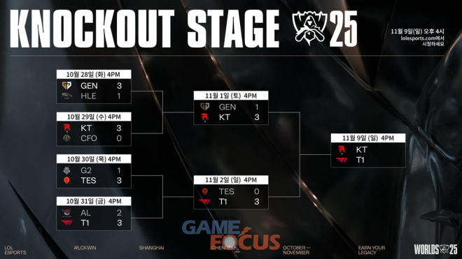 2025년 리그 오브 레전드 월드 챔피언십의 우승자를 배출한 리그는 LCK(한국)라는 사실이 확정된 가운데 트로피를 들어 올릴 영광의 주인공이 kt 롤스터일지, T1일지 가리는 일만 남았다.