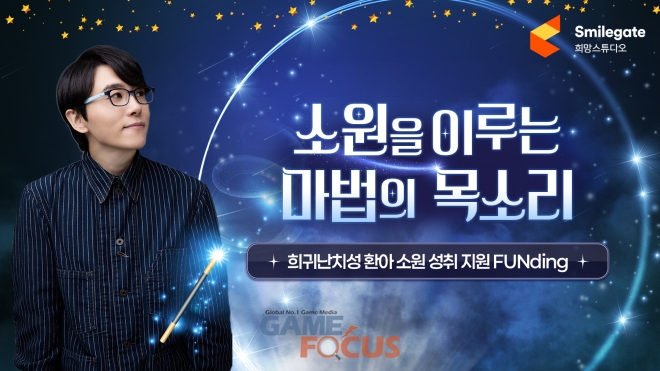 스마일게이트 희망스튜디오(이사장 권혁빈)는 남도형 성우와 함께하는 FUNding 캠페인 ‘소원을 이루는 마법의 목소리’를 12월 7일까지 희망스튜디오 기부 플랫폼에서 진행한다고 6일 밝혔다.
