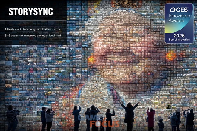 ‘STORYSYNC’는 관람객의 SNS 이미지를 인공지능(AI)이 분석해 실시간으로 스토리텔링 콘텐츠로 변환하고, 이를 미디어파사드 형태로 구현하는 기술이다. 특히 제주 지역의 설화를 소재로 지역성과 예술성을 동시에 구현해 기술적 창의성을 인정받았다.