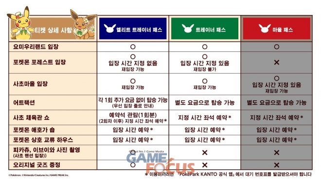 모든 티켓으로 요미우리랜드에 입장할 수 있으며, 판매 일정 및 요금 등의 자세한 내용은 PokéPark KANTO 공식 사이트의 ‘티켓 정보’에서 확인할 수 있다.