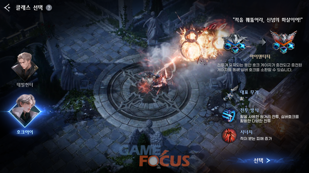 호크아이: 호크아이는 민첩하게 움직이며 기계 활과 특수 화살로 적을 공격하는 헌터이다.