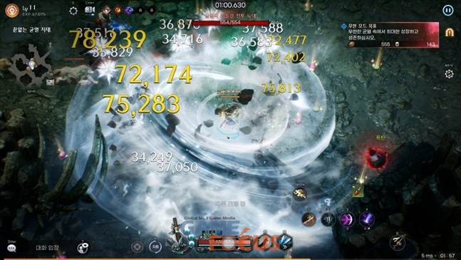③ 강타: 보스 몬스터가 그로기 상태 등 특정 조건에서 스킬 버튼 상단에 강타 버튼이 활성화됩니다. 버튼 사용 시 강타 공격으로 추가 피해를 입힐 수 있다.