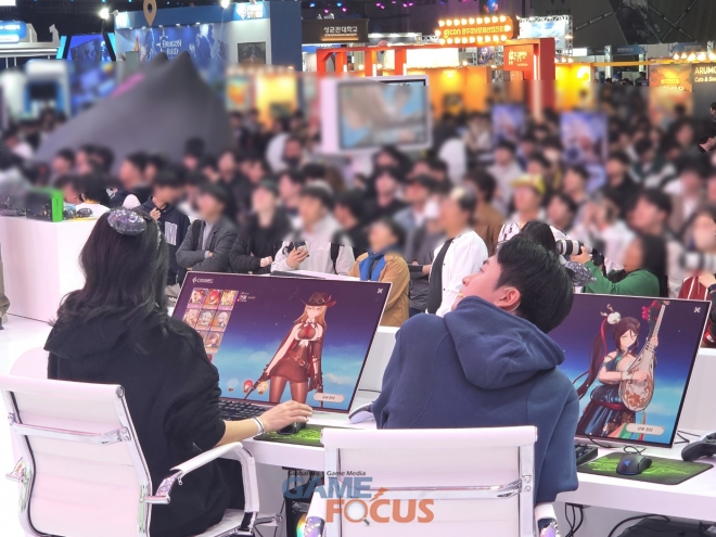 넷마블이 '지스타 2025' 넷마블 부스에서 14일 인기 인플루언서 일오팔, 닛몰캐쉬, 소풍왔니 등이 참여한 '몬길: STAR DIVE 최강 인플루언서 보스 토벌 대전'을 진행했다.