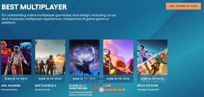 한편, 올해 TGA 멀티플레이어 부문 후보에는 ‘배틀필드6’, ‘엘든 링 : 밤의 통치자’, ‘피크(PEAK)’, ‘스플릿 픽션’ 등 총 5개 작품이 이름을 올렸다.