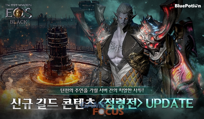 블루포션게임즈(대표 정재목, 조승진)는 자사에서 직접 개발하고 서비스하는 모바일 정통 MMORPG ‘에오스 블랙의 서버 단위 대규모 전투 콘텐츠 ‘점령전’과 신규 심층 크로스 월드 던전 ‘불타는 테르나’, 그리고 신규 영혼체 4종 및 ‘신화’ 등급 장비를 포함한 대규모 업데이트를 실시했다고 20일 밝혔다.