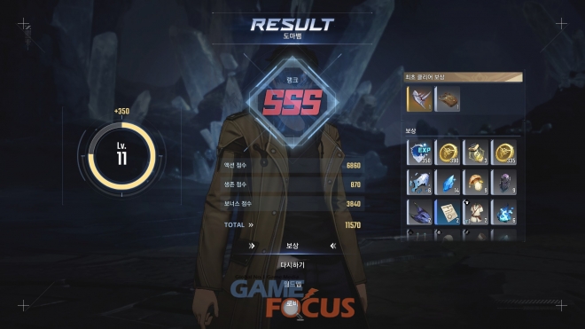 플레이 타임은 메인 스토리만 소화하면 약 15~20시간 정도의 분량이다. 반복적인 파밍과 아이템 제작, 헌터 모집과 각종 업적 등을 모두 소화한다면 30~40시간 이상 소요될 것으로 예상된다. 여기에 타임어택, 보스 공략까지도 파고든다면 그 이상이 될 것이다. 메인 스토리만 소화한다면 조금 아쉽지만, 보스 공략까지 알차게 즐기게 된다면 가격 대비 적당한 수준으로 느껴졌다.