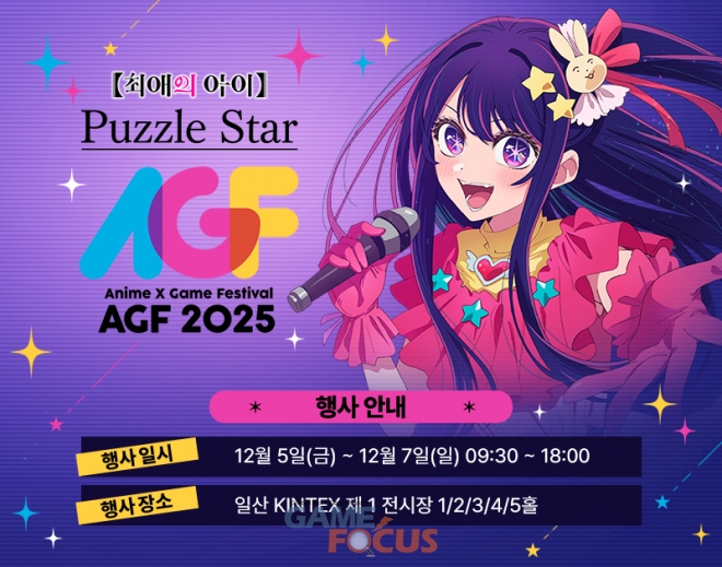 공식 글로벌 홈페이지를 통해 처음 공개한 소식은 ‘【최애의 아이】Puzzle Star’의 AGF 2025 출품 소식이다. AGF 2025는 12월 5일부터 7일까지 경기 고양시 킨텍스에서 3일간 진행되는 국내 최대 종합 애니메이션 게임 축제다. ‘【최애의 아이】Puzzle Star’는 AGF 2025의 NHN 부스를 통해 만나볼 수 있게 된다.